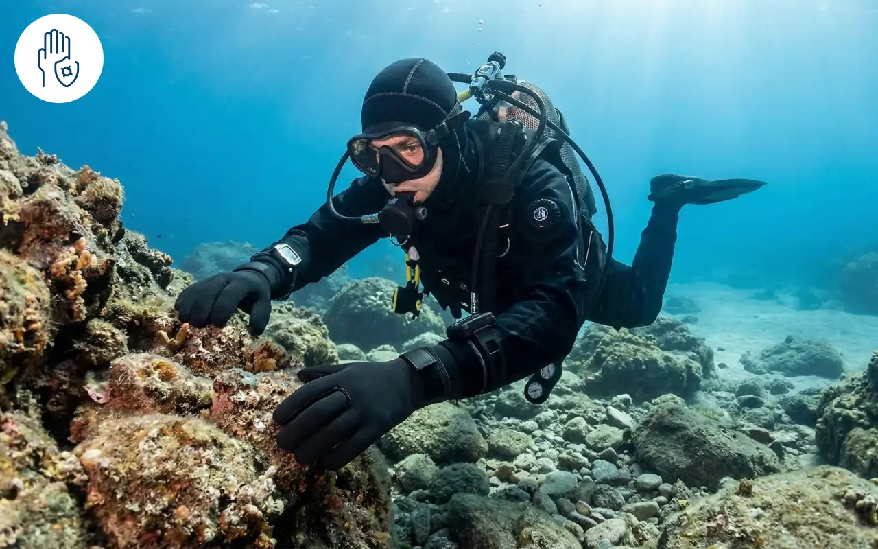Anti-slip palm design ensures nothing slips from your grasp. Confidently hold equipment or explore underwater worlds.