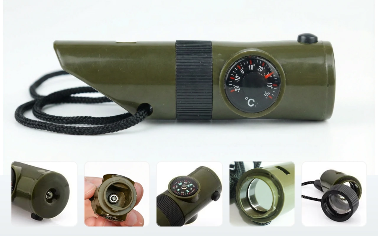 We added this whistle to our family camping box. Kids learned the compass easily, and we practiced using the mirror and sound for pretend rescue drills.