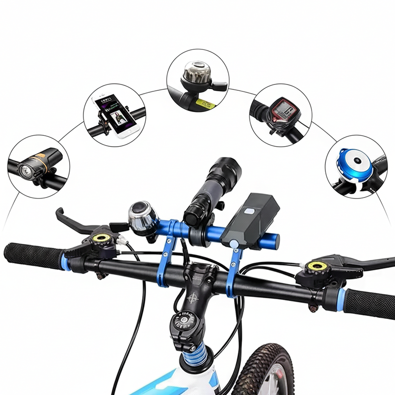 Enjoy a cleaner ride by making space for all gadgets. Lights, bells, and trackers fit easily without clutter. The Threo extender fits most handlebars and mounts in minutes.