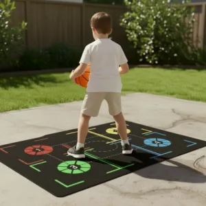 Really love dribbling on this mat indoors. Doesn’t slip at all, plus my family doesn’t get annoyed by loud bouncing.