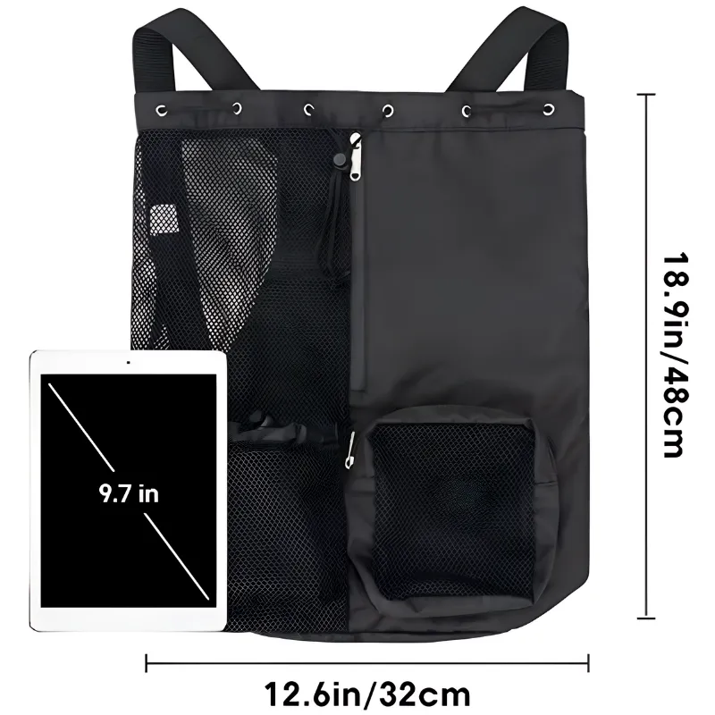 Took this mesh bag on vacation, and it made packing so simple! Lots of compartments for sunscreen and snacks.