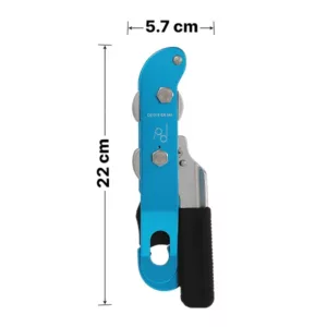 It is vital to be able to take quick action while climbing. Our tool allows just that, featuring a simple mechanism. It works on a friction-based system. Applying pressure to the rope creates resistance, allowing smooth regulation of descent speed. You can do it by exerting minimal force on the handle, similar to operating a pair of shears.