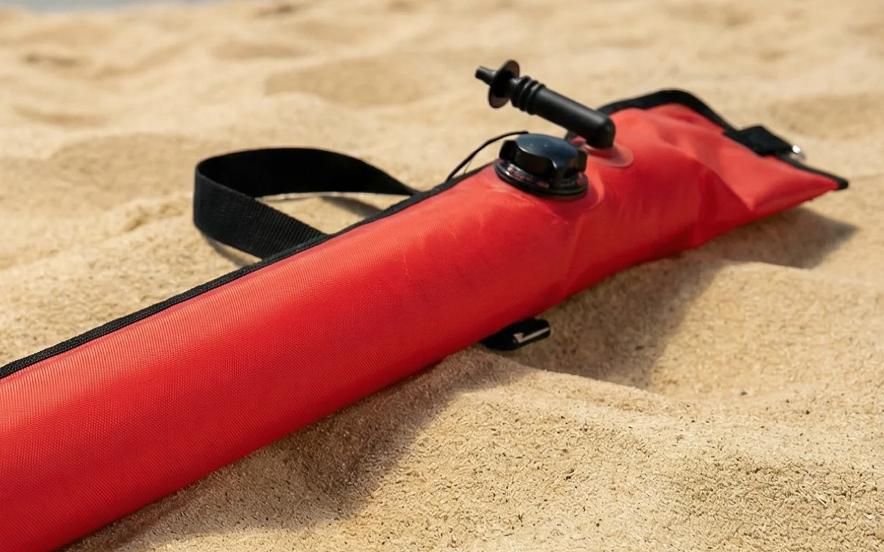 The bright inflatable buoy gives me peace of mind. Light enough to carry anywhere and feels sturdy. Definitely taking this anytime I go underwater.
