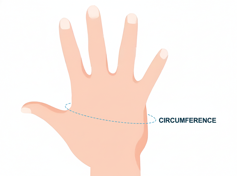 • 1. Wrap the measuring tape around your palm, just below the knuckles.
