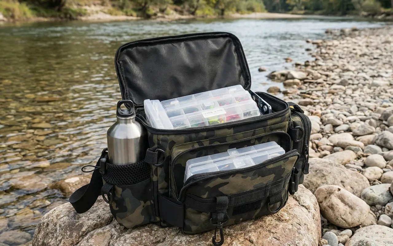 Lures stayed neatly sorted inside. Loved how I could just swing it around, grab what I need, and keep casting.