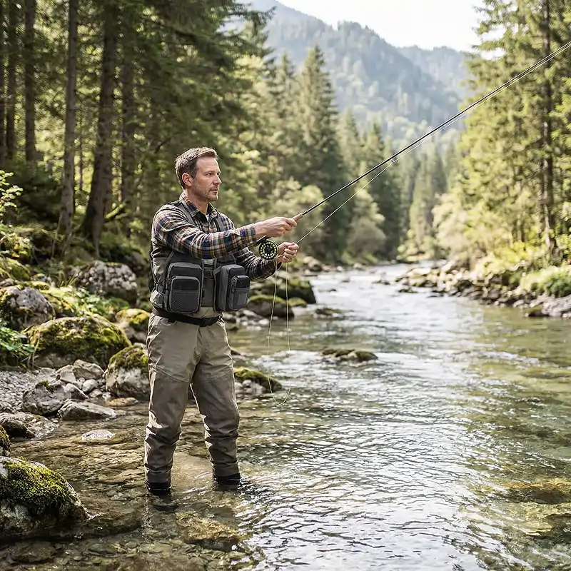 I keep this chest pack stocked for quick evening sessions. Slide it on, snap the buckle, and I’m on the river with all my gear in reach.