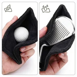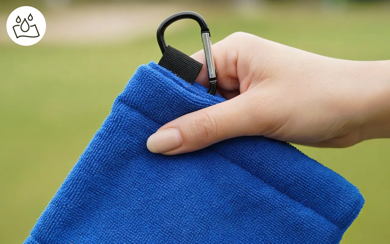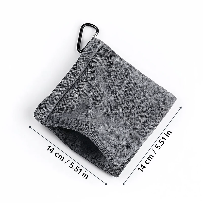 Really love the carabiner clip, attaches to my belt in seconds. The microfiber fabric is gentle but tackles mud perfectly on balls and clubs.