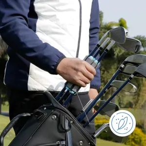 Threo golf club holder keeps your gear tidy every round. Prevent scratches during travel or storage using this clever accessory. It weighs very little, so carrying feels effortless anywhere. Choose black orange or grey blue designs for extra style.