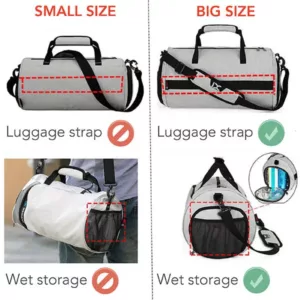 This gym bag is made from waterproof materials designed to absorb moisture and sweat while providing maximum comfort. Plus, it protects against rain showers and helps eliminate external factors such as wind resistance. A detachable shoulder strap makes it easy to carry. This high-quality gym bag also has an Oxford strap on the back of big-size bags to get attached to luggage pullings poles. It’s perfect for long-distance journeys if you’re looking for a comfortable travel option.