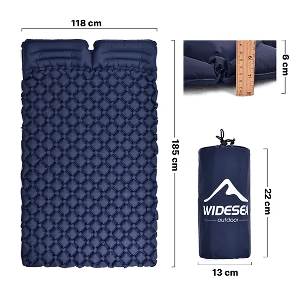 The Threo air mattress is ready to bring you unparalleled convenience. Have a fulfilling time in dryness and safety, knowing nothing will disturb your sleep. Our mat is moisture-proof, and its sturdy construction and navy color make it resistant to wear and tear. It is compact and lightweight, so you can enjoy a well-rested experience wherever you go.