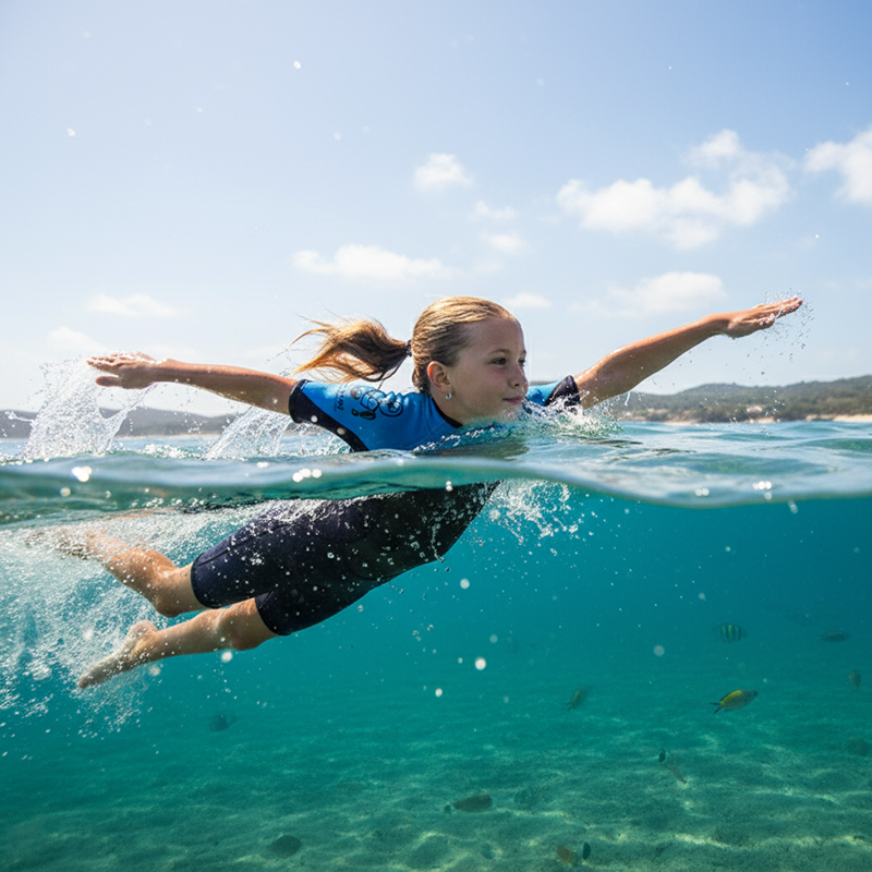 Every splash feels better when children avoid getting cold quickly. Threo wetsuit uses soft, stretchy neoprene that gently hugs every curve. Short sleeves let arms move easily in water, so swimming becomes fun.
