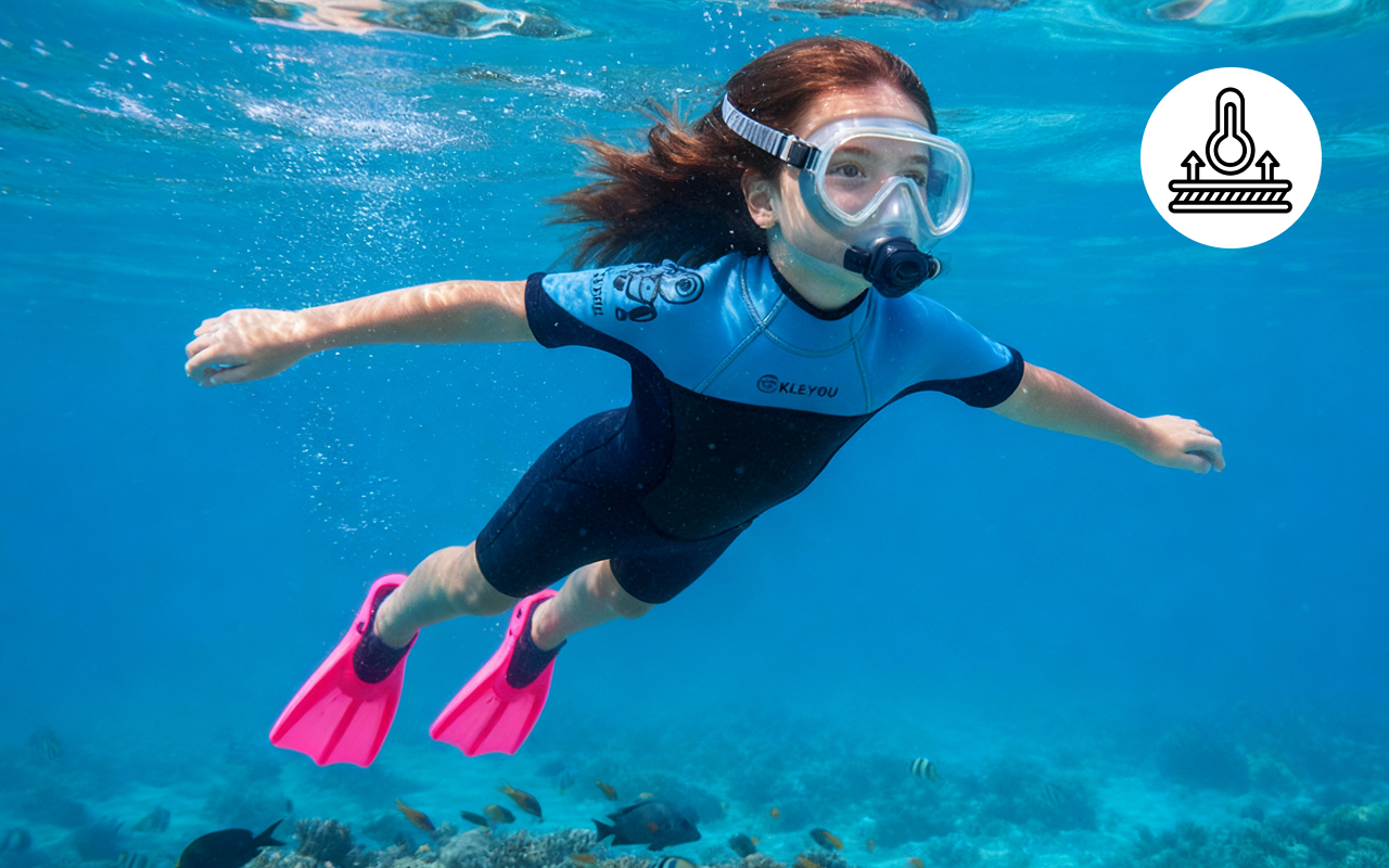 Chilly water is no longer a problem for active swimmers. The special fabric keeps heat close to the skin, making every activity pleasant.