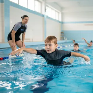 Great suit for swimming lessons! My little brother says it’s soft and fits really snug but lets him swim just like normal.
