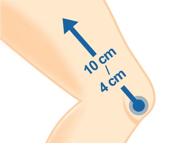 - 2. Wrap the measuring tape around the widest part of your thigh from about 10cm/4" above the midpoint of your kneecap.