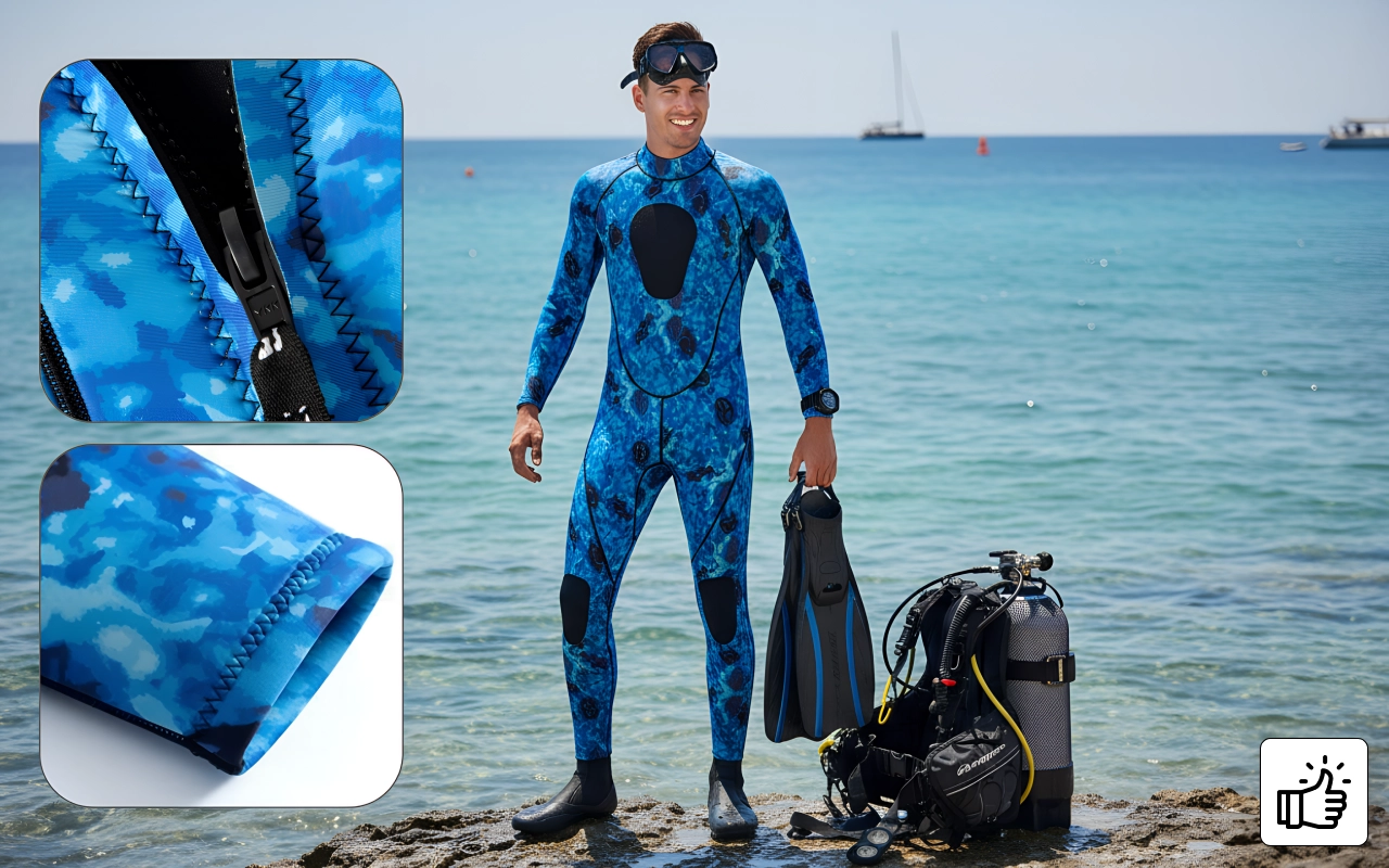 Went for a long dive, felt warm the whole time. Camo made me less noticeable underwater, caught more fish than usual.