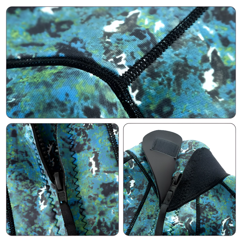 Camouflage design hides you from sea creatures and hazards. Durable construction shields skin from stings, scrapes, and sharp objects.