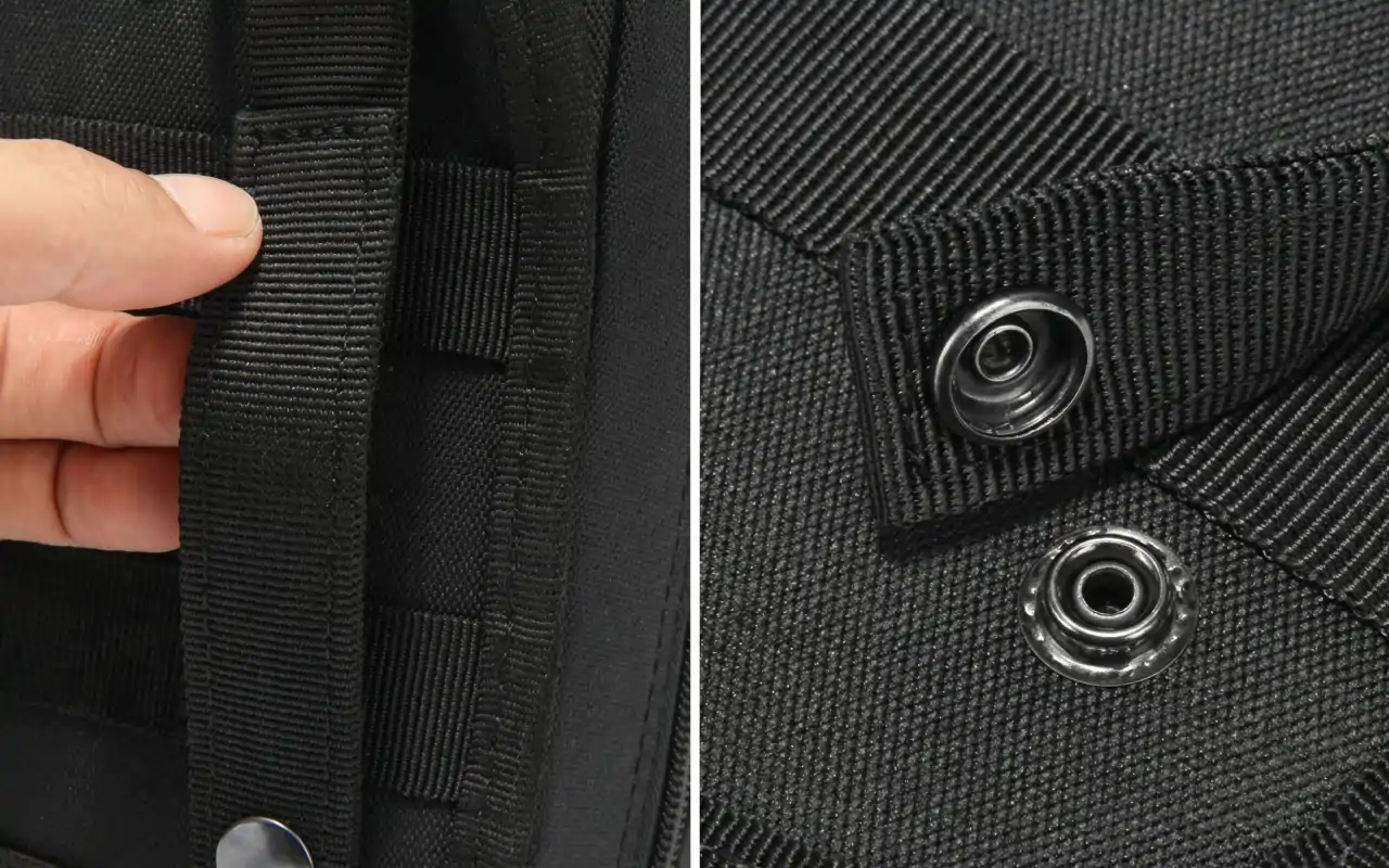 Mounted the pouch on my mountain bike backpack. Copper snaps stay tight over rough trails, and I can tear it off fast when friends need quick care.