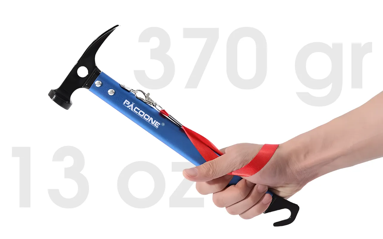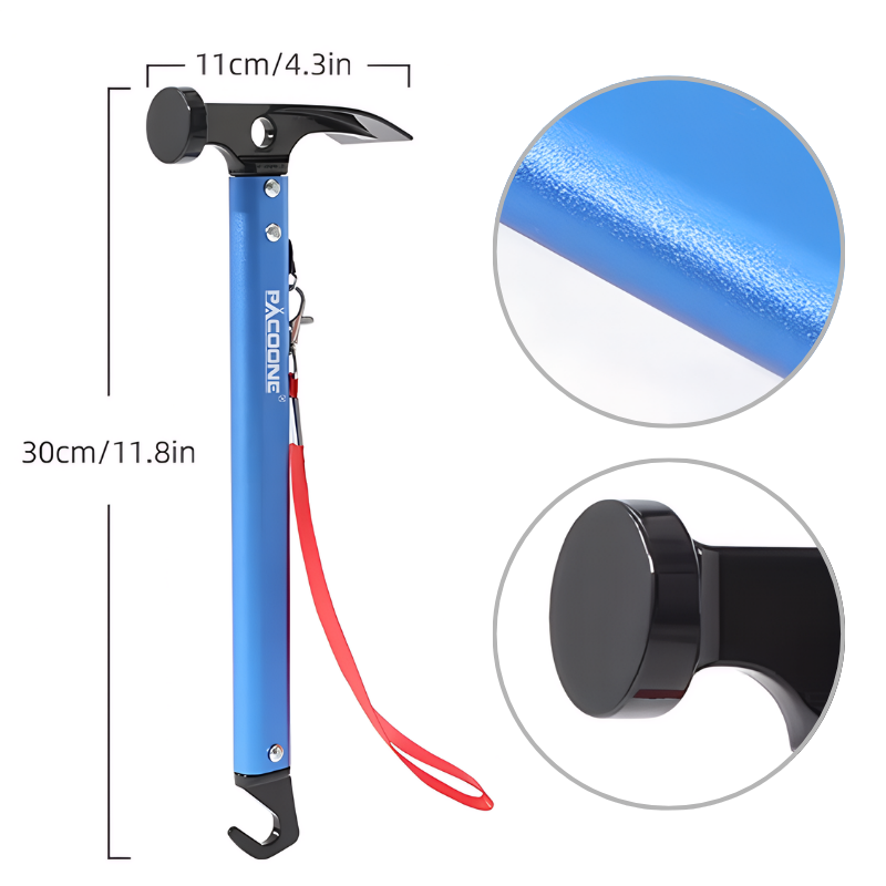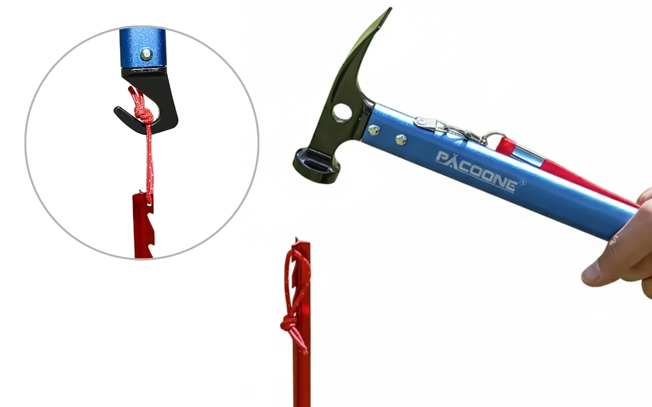 The hammer doubles up for all my needs. Used it for tent pegs and adjusting rope tension. Handy find!