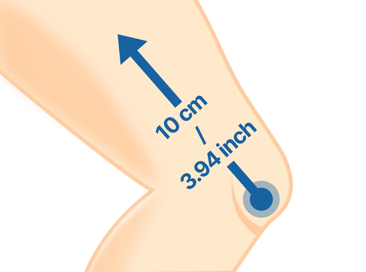 - 2. Wrap the measuring tape around the widest part of your thigh from about 10cm/3.9" above the midpoint of your kneecap.