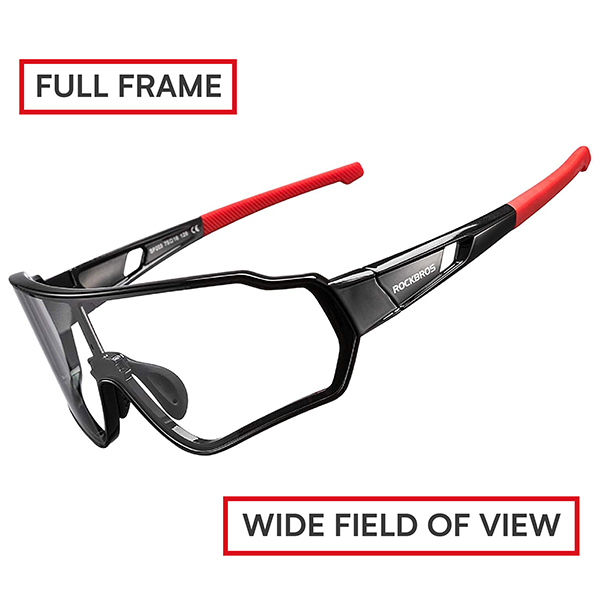 THREO photochromic glasses have smart discolouration according to the intensity of the UV lights. Sunny day into dark grey, cloudy into light grey, in the room or night it will be transparent. The glasses protect the eyes without interfering with your perception of colour. What’s more, the wide-angle field of view gives you more clear peripheral vision to avoid the frame blocking your view.