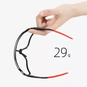 THREO cycling sunglasses have 100% protection from UVA, UVB and UVC rays to 400nm. They effectively fight ultraviolet rays and protect your eyes from damage. The glasses are very lightweight — only 30g, they reduce the pressure on your nose and temples. Plus, they feature an unbreakable TR90 frame for all-day comfort and protection.