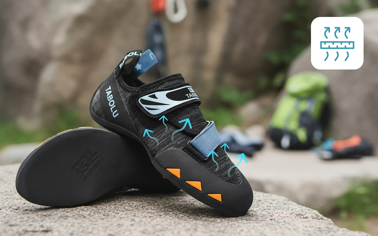 Mesh panels allow air to flow freely around toes. Stay cool and comfortable even during long climbing sessions.