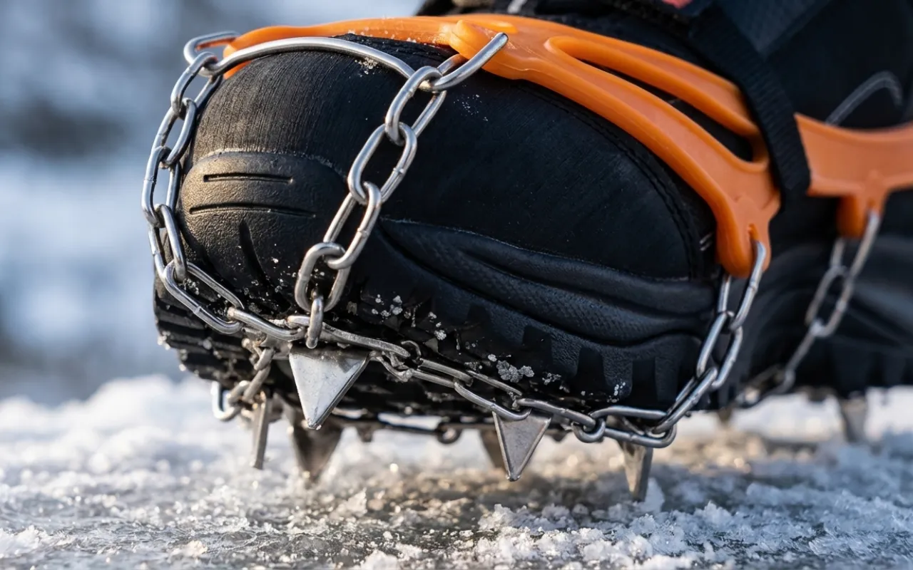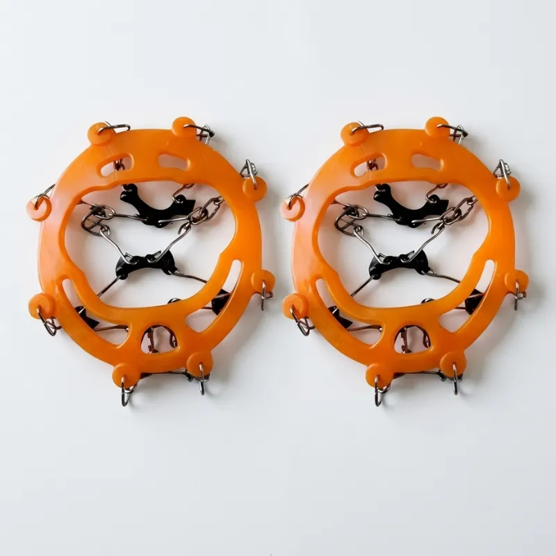 Eight strong spikes help footwear bite into frosty or snowy surfaces. You can move forward with stability and peace of mind.