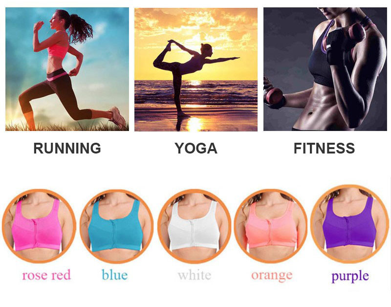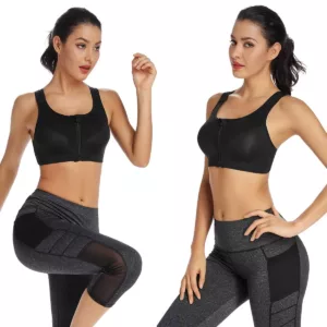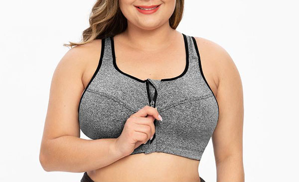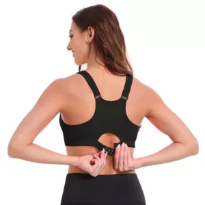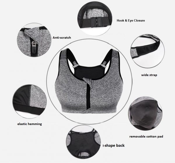I-shape back shoulder strap effectively protects against shock and prevents the bra from shifting or slipping off. The bra has an anti-slide zipper and hooks that protect from sliding down when doing exercise. Adjustable support band in the back, like an everyday bra with 3 sets of clasps, allows adjusting the cup size.
