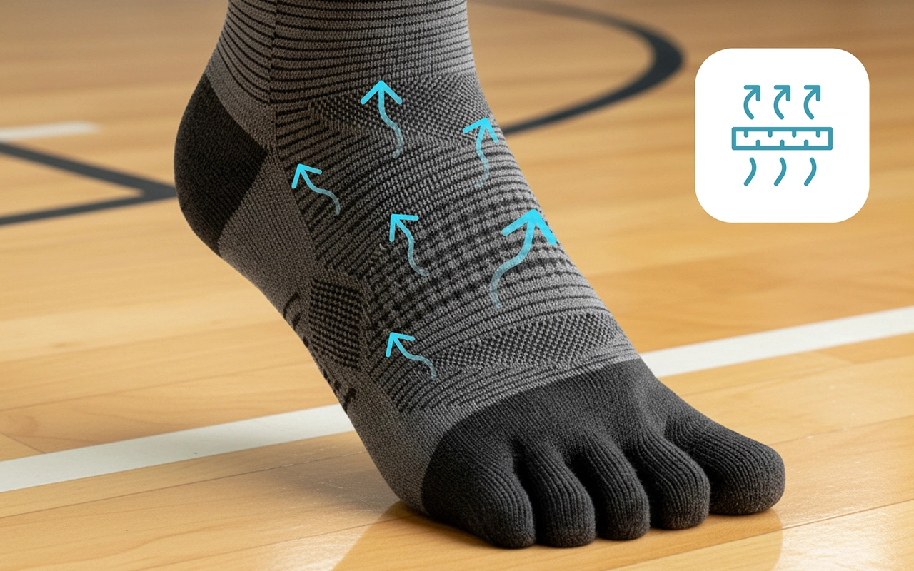 The fabric feels light but still keeps my toes separated, which helps me avoid discomfort. Sweat disappears quickly, so no sticky feeling at all.