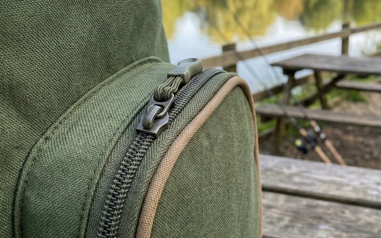Got this for my dad and he uses it every fishing trip! The zippers feel strong, and he says it sits nice even when full.