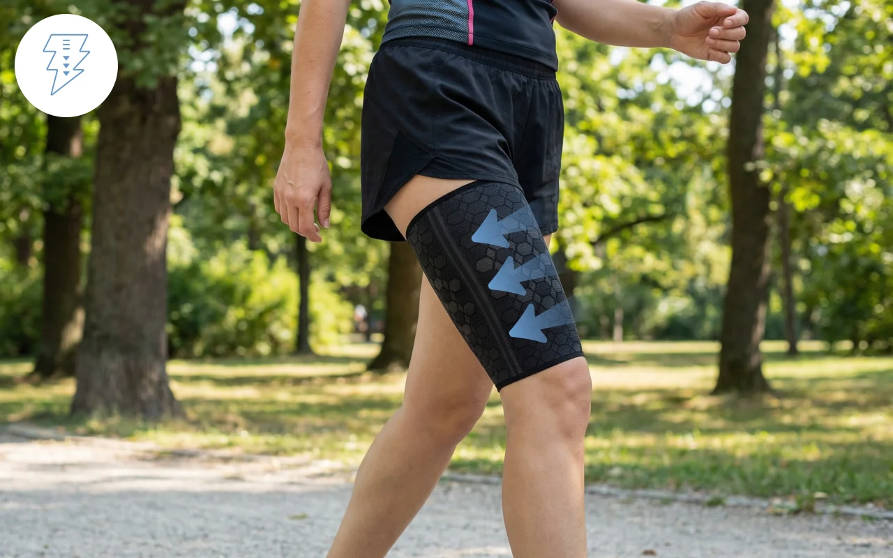 Got this thigh band after my doctor suggested extra support. It fits smoothly under jeans, doesn’t slide, and my daily walk feels comfortable again.