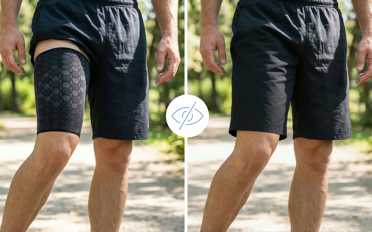 I wear this sleeve during long warehouse shifts, and my thigh no longer throbs at the end of the day. Stays hidden under my loose pants.