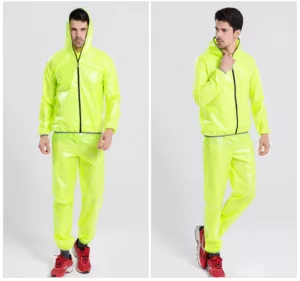The jacket-and-trousers set is long-lasting, extremely waterproof, and won’t tear easily. The pieces are designed with plenty of adjustable components to keep the rain out (cuffs, waist, hood). The suit boasts the latest waterproof technology that helps keep you dry and protected even from heavy rain throughout the day. Along with taped full zippers, the raincoat ensures heavy rainproof and windproof property. Plus, this rainwear has a protective hood that will keep you comfortable in the midst of a downpour.