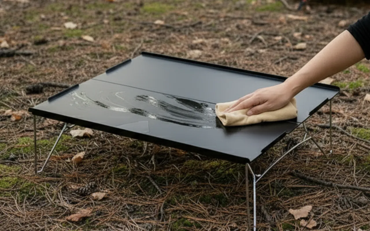 Super stable and feels really solid. Used it on rocky ground with no shakes. Cleaning is so easy, crumbs just wipe right off.
