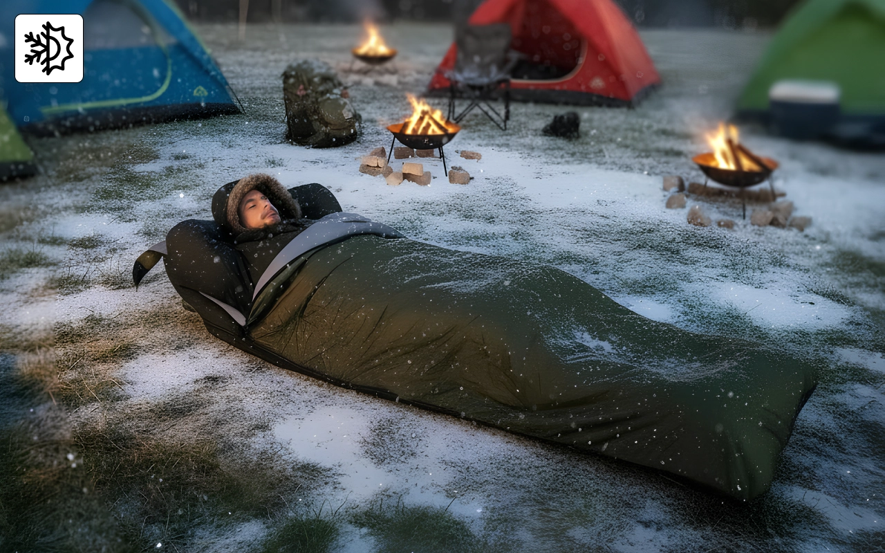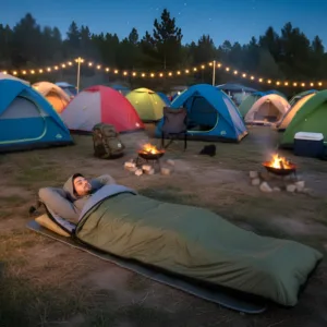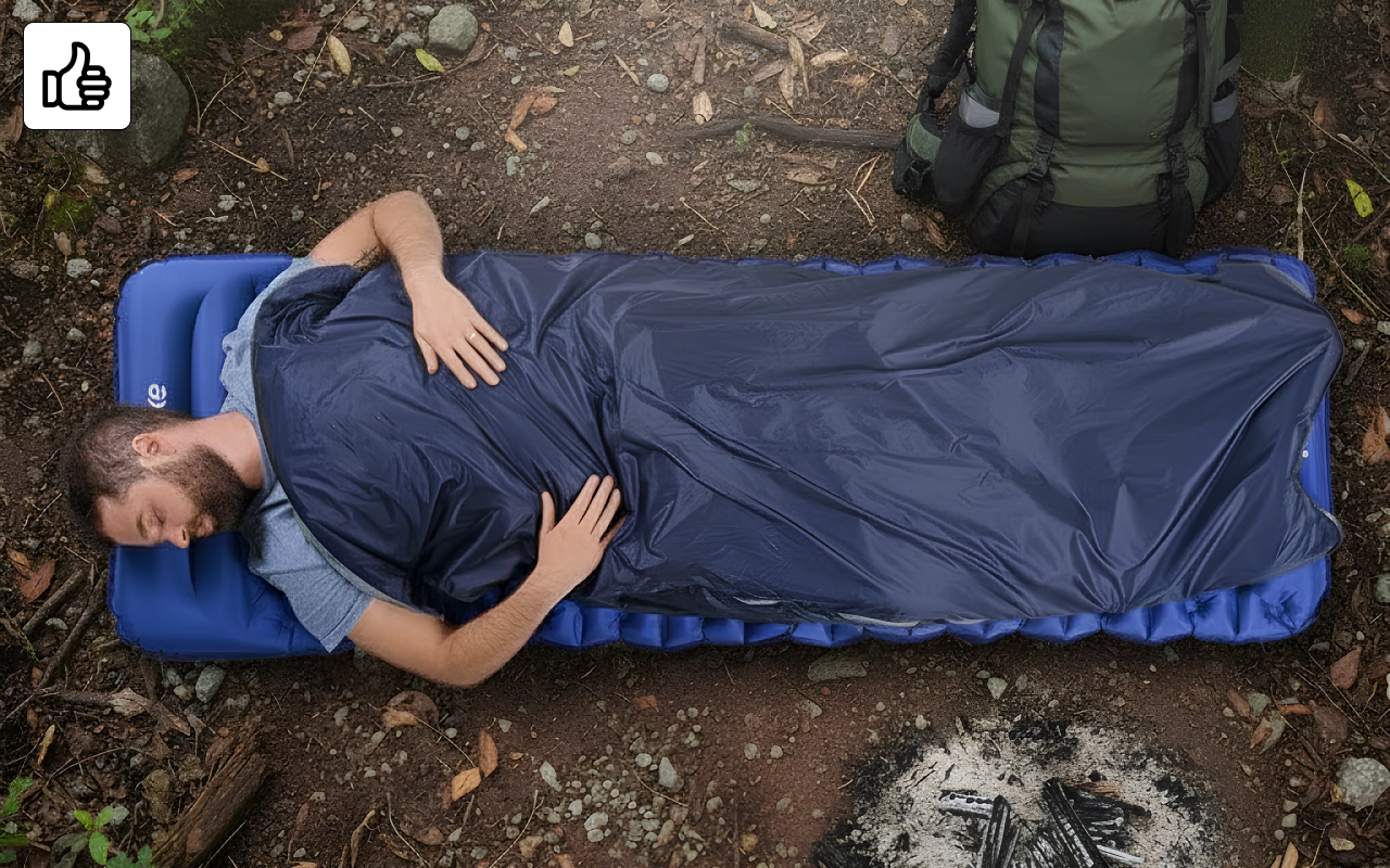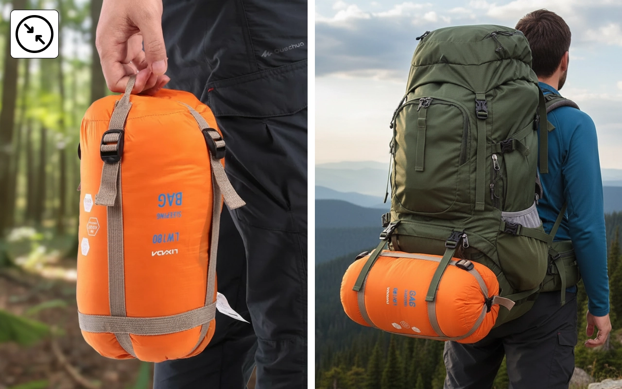 First time camping and this sleeping bag made it cozy. Loved how it packed up small and kept me warm all night. Very comfy inside!