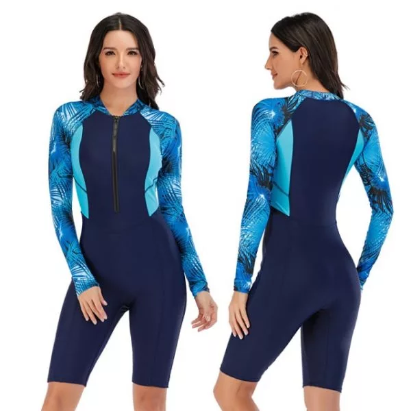To complete a surf-ready look, every woman needs a stylish and durable rash guard. THREO swimsuit offers warmth, comfort, and sun protection. This one-piece long sleeve women’s swimsuit is made from high-quality spandex and polyester. Thanks to its stretchy feature, it provides great freedom for your movements.