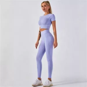 These high-waisted leggings with ribbed waistband offer great support and enhance your shape, bringing you closer fitting. The attractive and stylish top/shirt makes this sports set more charming, flirty, and chic. Whether it is dating, everyday wear, or sports activities, this yoga set can outline your line curve and make you look different. It is perfect for the gym, yoga, fitness, and any type of workout, or for everyday use. Available in a variety of stylish colors.