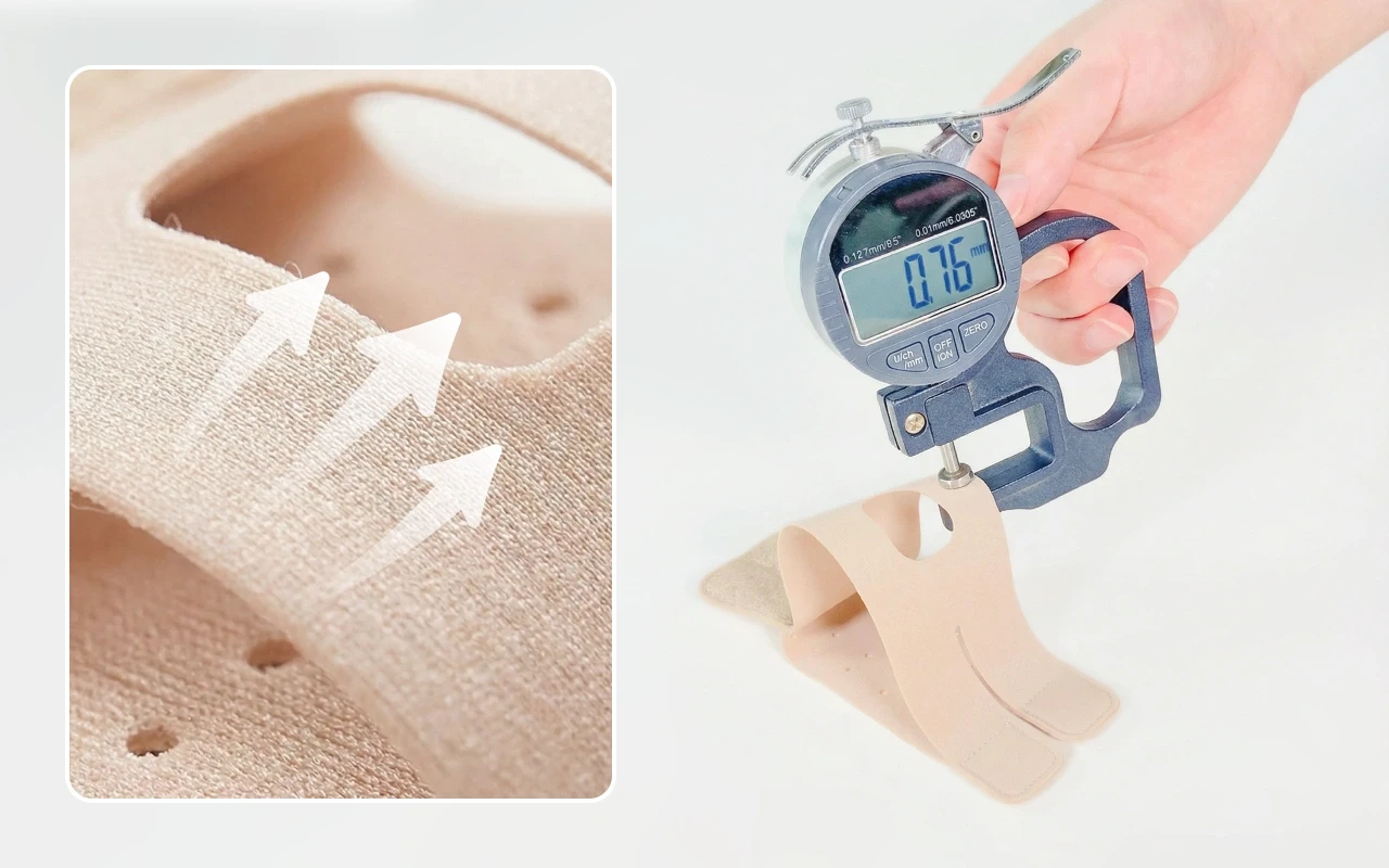 The fabric is thin but strong and lets my skin breathe. Stays super comfortable even after wearing it all day.