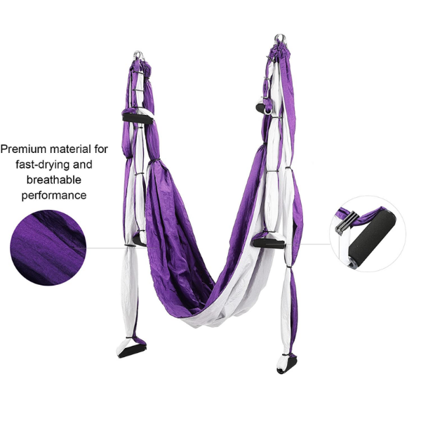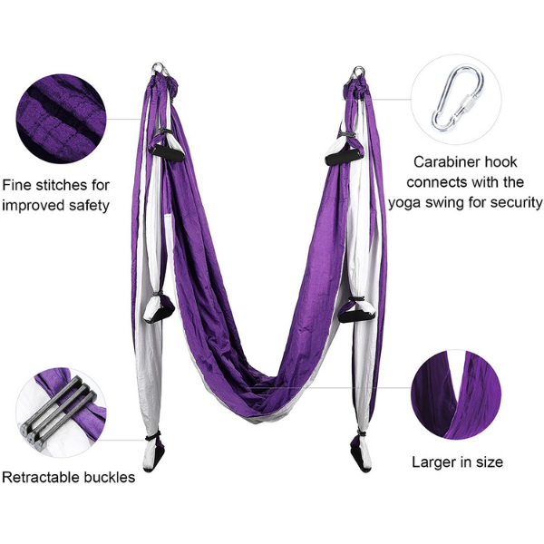 This swing can provide professional-level health benefits for your entire family. It acts as a mood booster and stress reliever so you can get both improved physical and mental health. This aerial swing is made of high-quality, strong, durable parachute material fabric, and polyester taffeta. It includes powerful grip rubber handles so that you can use the swing safely. They have optimal anti-skid performance, helping alleviate hand fatigue and allowing you to avoid hand sweat. The screw rings material is stainless steel, which is antirust.